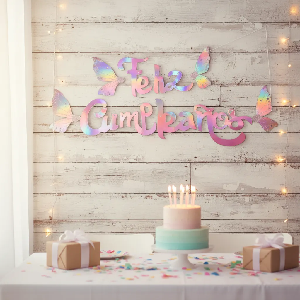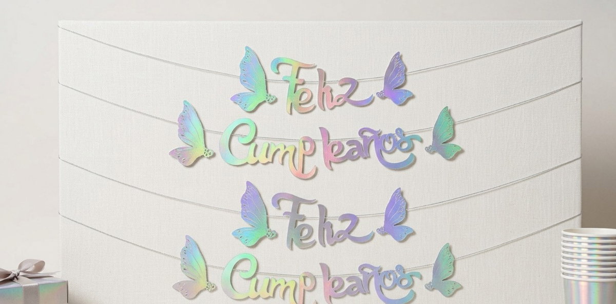 BANDERÍN MARIPOSA IRIS ''FELIZ CUMPLEAÑOS''