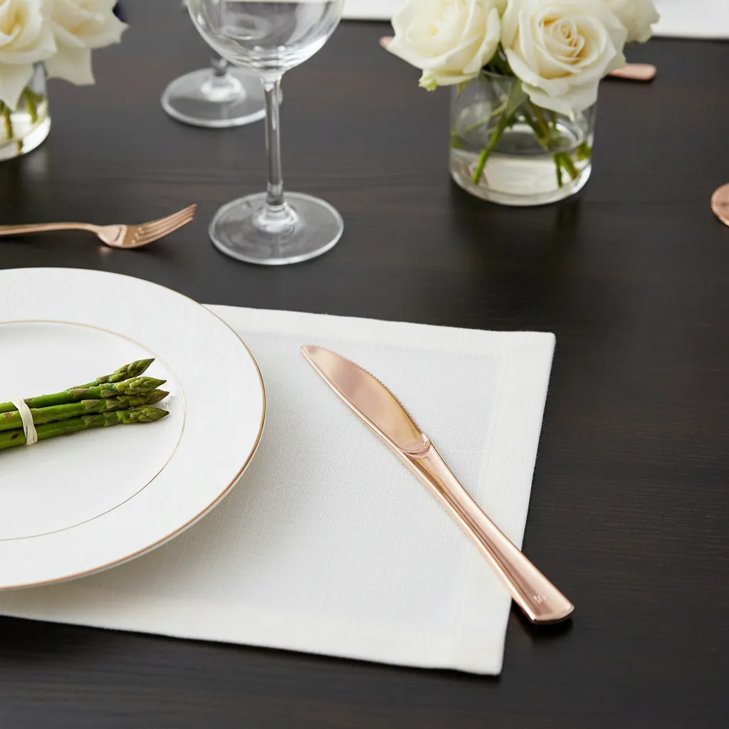 La combinación del color rosa gold aporta un estilo moderno y sofisticado a tu mesa. Además, son prácticos y resistentes, ideales para facilitar el servicio de tus deliciosos platos.