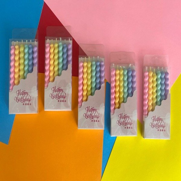 Velas Torneadas Pasteles x 6 Unidades Multicolor