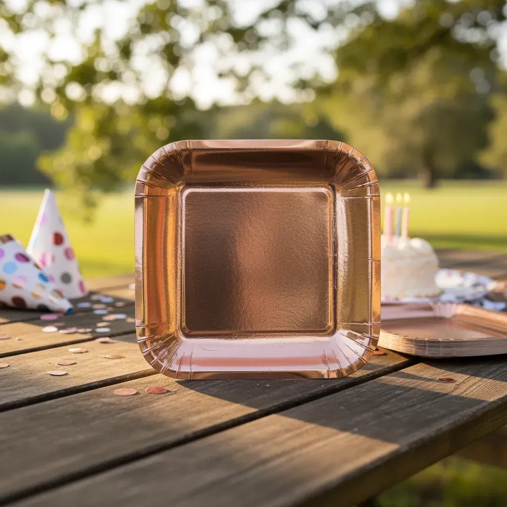PLATOS CUADRADOS POLIPAPEL ROSÉ X10UN