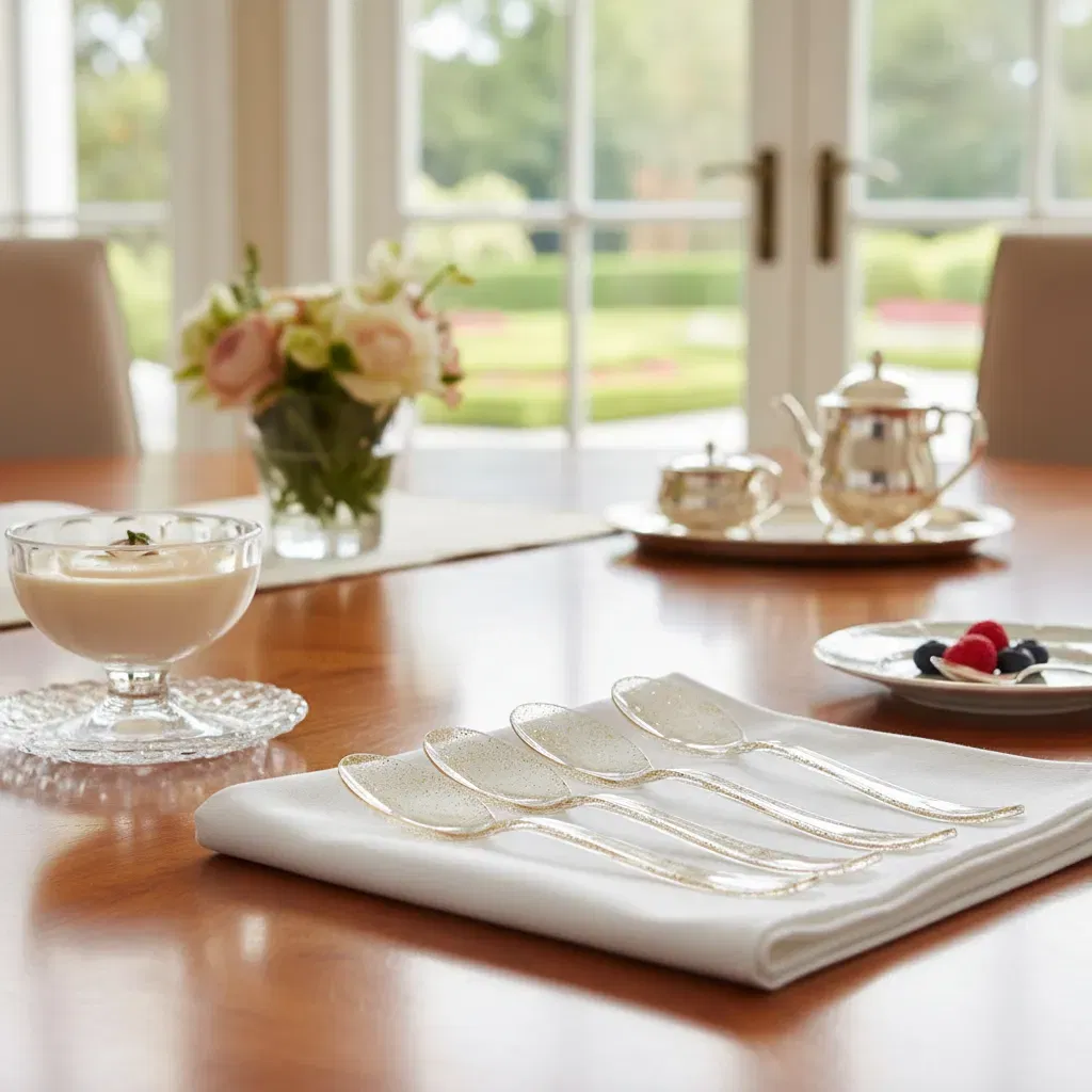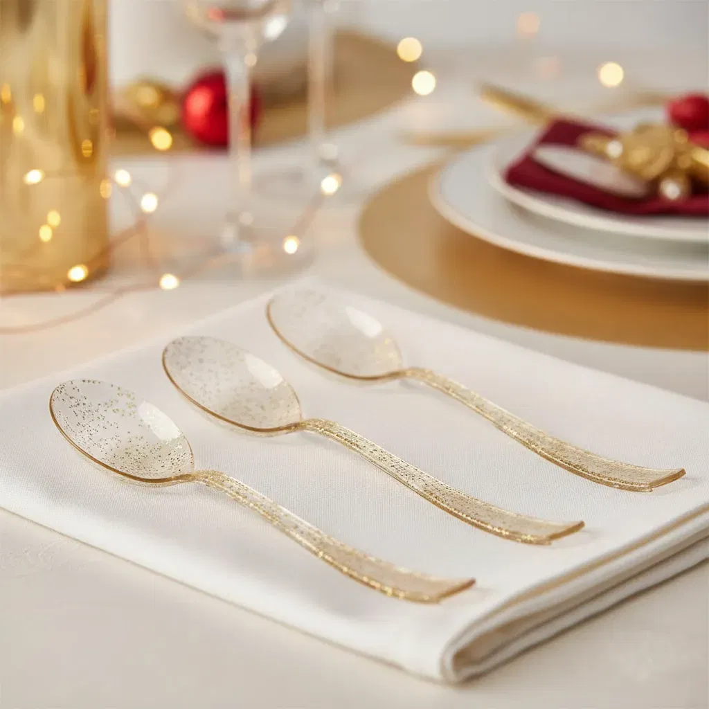 CUCHARAS PLASTIC GLITTER X24UN DORADAS