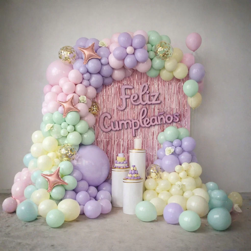 SET DE DECORACIÓN GIGANTE "FELIZ CUMPLEAÑOS" - PASTEL COLORS X72PCS