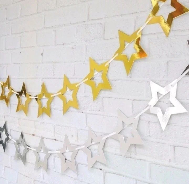 Esta hermosa guirnalda mide aproximadamente 2.5 metros y está disponible en tres colores para elegir: rosa gold, plata o dorado. Es perfecta para decorar cualquier tipo de evento, desde fiestas hasta reuniones familiares. El precio es por unidad.