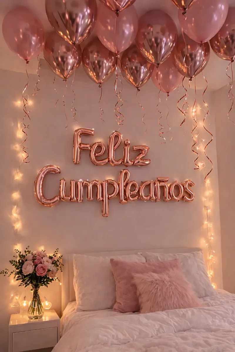 Set De Globos Decoración tira Led Feliz Cumpleaños
